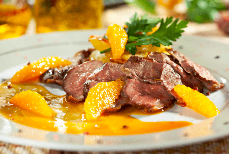 Утка гриль с персиками