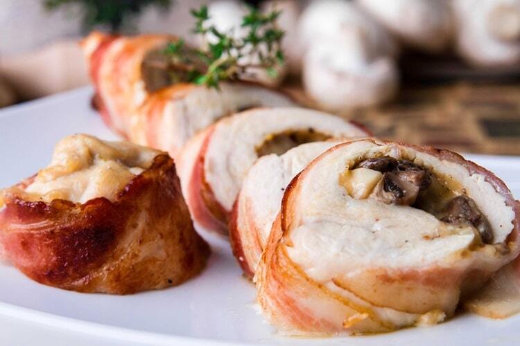 Куриные грудки в беконе с грибами