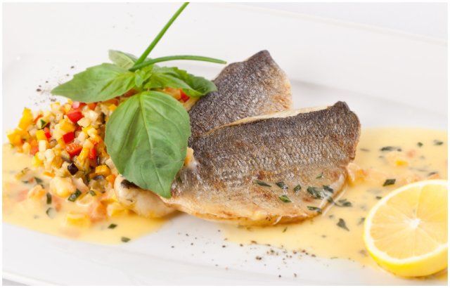 Дорадо с овощами и сливочным соусом